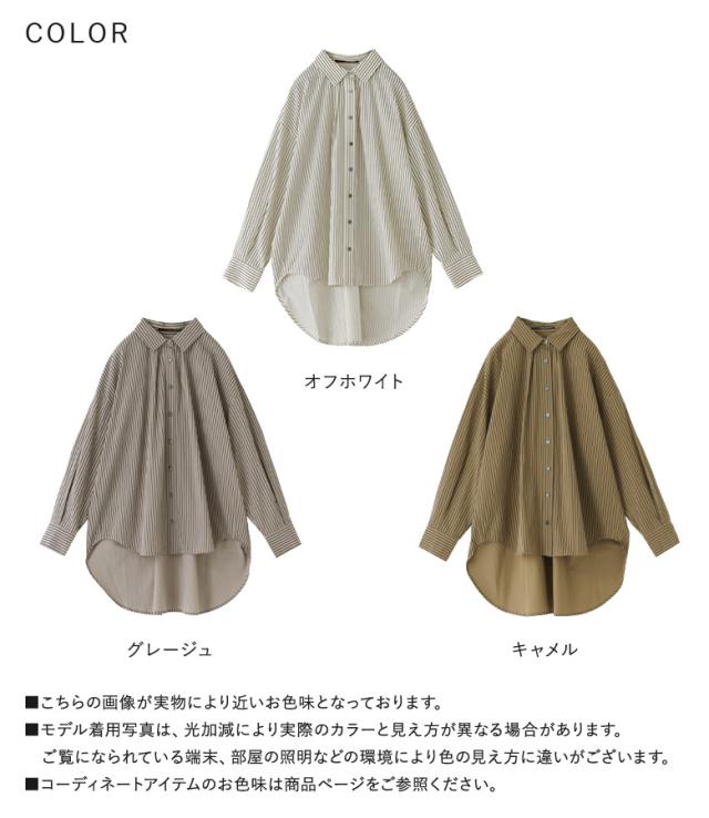 長袖シャツ レディース トップス 綿100% コットン100% 長袖 襟付きシャツ ロングシャツ 羽織り ストライプ 秋 冬 オシャレウォーカー 【TP】 シャツ ボタンシャツ 前開きシャツ 柄シャツ 羽織 襟付き 白 オフホワイト ミディ丈 ミドル丈 タック 後ろ下がり ストライプ柄 配色 おうちで洗える フォーマル カジュアル シンプル ナチュラル モード キレカジ 可愛い系 大人女子 大人可愛い お洒落可愛い 大人カジュアル オフィスカジュアル 上品 きれいめ ベーシック ニュアンス ラフ かっこいい お尻が隠れる 二の腕カバー Sサイズ Mサイズ Lサイズ LLサイズ 3Lサイズ XLサイズ フリーサイズ ぽっちゃり 体型カバー 大きいサイズ プラスサイズ 10代 20代 30代 40代 50代 60代 低身長 高身長 女子会 オフィス 通勤 通学 お買い物 お出掛け 旅行 リゾート おしゃれ お洒落 トレンド 流行 osharewalker グレージュ キャメル ブラック 黒[ID]13to09a
