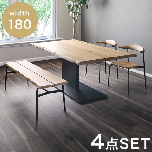 テーブル 幅180cm(オーク)+チェア2脚+ベンチ