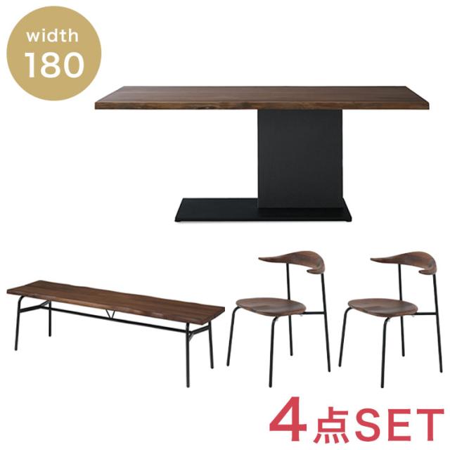 テーブル 幅180cm(ウォールナット)+チェア2脚+ベンチ