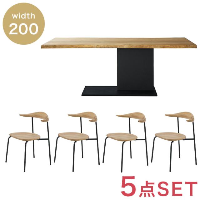 200cm幅ダイニングテーブル、ダイニングチェア(4脚)