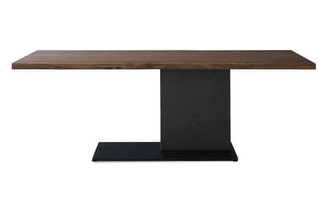 200cm幅ダイニングテーブル×ダイニングチェア(4脚)のウォールナット素材のダイニングセットです。テーブルはウォールナット素材、一枚板風のテーブルです。天厚4cmの重厚感と、天然杢ノタ面の本来の木の風合い、そして天板は1cm厚の単板を使用することにより木目がしっかりと出て高級感が感じられます。脚も特殊なL字型の真ん中脚になっており、デザイン性もありつつ、どこに座っても脚が干渉しない使いやすさを金そろえております。チェアはウォールナット素材を使用した板座のチェアです。座面はさくりをとっております。スタッキング(積み重ねる)が可能です。