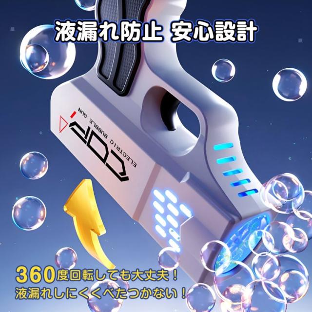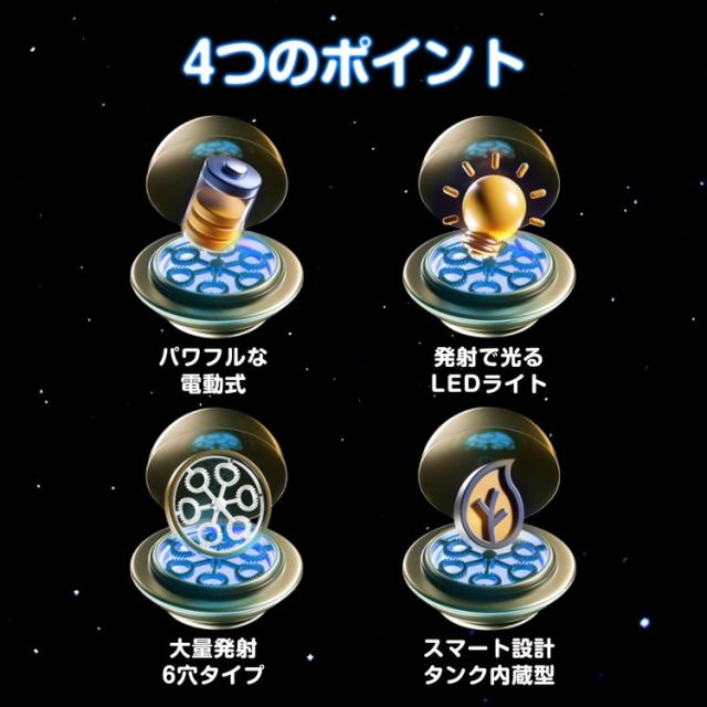 バブルマシン シャボン玉 電動バブルガン しゃぼん玉 バブルガン 電動 自動 連続噴射 6穴 大量 いっぱい USB充電 充電式 LEDライト 液漏れ防止 クリスマス 新年 誕生日 子供 キャンプ 外遊び tkpa003