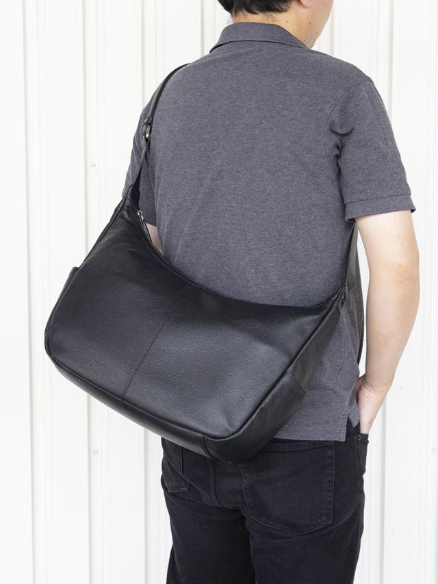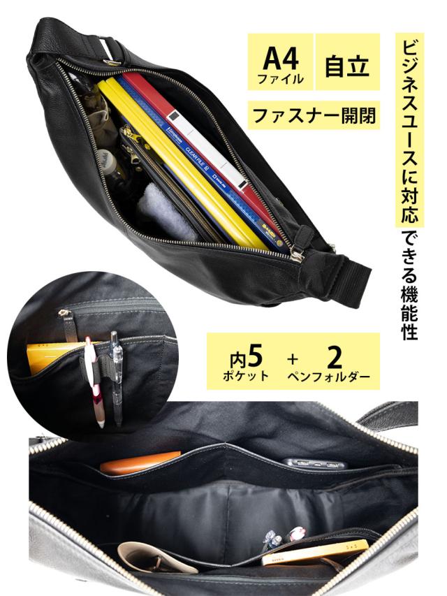 ショルダーバッグ メンズ 斜めがけ a4 本革 革 レザー 横型 舟形 通勤 ビジネス 出張 旅行 大人 カジュアル 肩掛け 無地 シンプル おしゃれ レディース ワンショルダー ブランド 丙午 弐 ひのえうま 黒 ブラック HU20