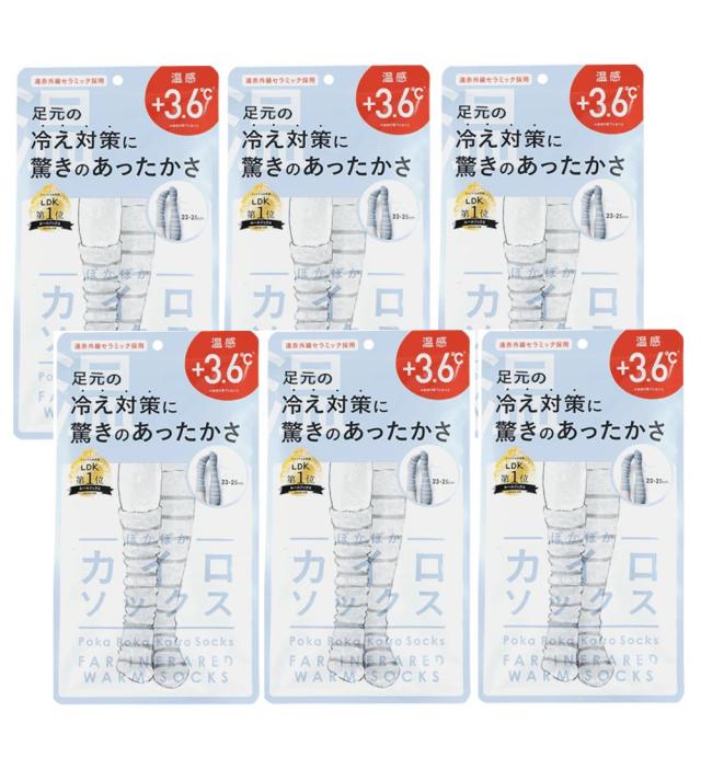 ぽかぽかカイロソックス 04 Powder Blue×Off White×6【6個セット】 送料無料 靴下 ソックス もこもこ 冷え 靴下 あったか