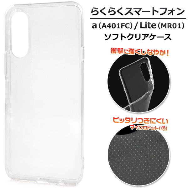 らくらくスマートフォン a(A401FC) Lite(MR01)用 ソフトクリアケース ノーマル シンプル 背面保護カバー マイクロドット グレア現象防止 携帯ケース 汚れ防止 傷防止 携帯カバー スマホカバー ケータイケース スマートフォンケース 薄型 デコ用 スマホアクセサリー