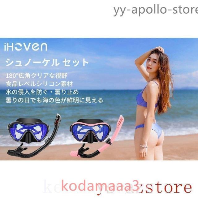 シュノーケリング シュノーケル マスク スノーケル 2点セット iHOVEN 水中メガネ 曇り止め ダイビングマスク 水漏れ防止 呼吸用パイプ 潜水メガネ 浸水防止 スイミングゴーグル 呼吸管 スキューバ マウスピース 排水管 潜水眼鏡 サイズ調整可能 男女兼用 旅行 海 離島