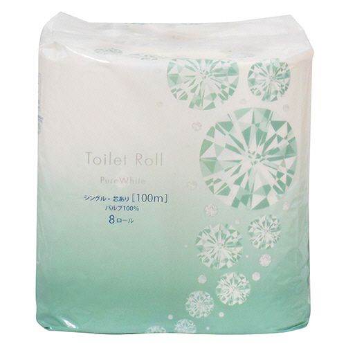 トイレットペーパー ピュアホワイト シングル 芯あり 100m 1セット(48ロール:8ロール×6パック)