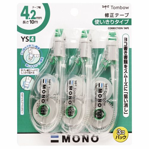 修正テープ モノYS4 4.2mm幅×10m 緑 1パック(3個)