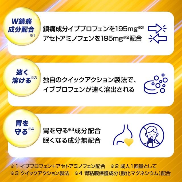 イブプロフェンの速い溶出を実現した独自技術のクイックアクション錠を採用。