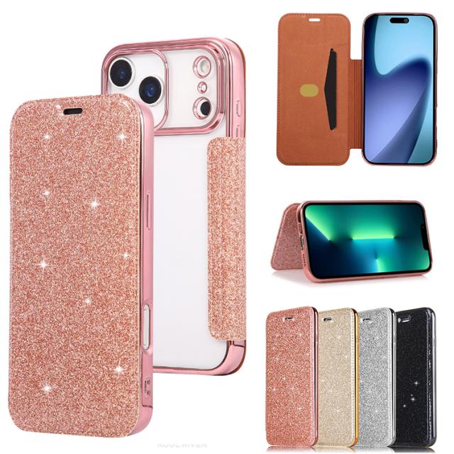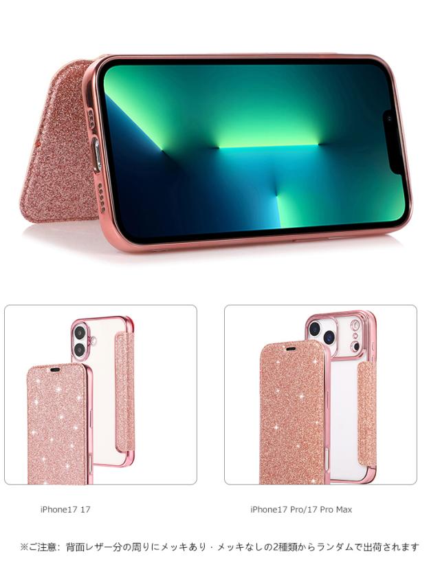 iPhone17 クリア 手帳型 ケース / カバー 17 Air/17 Pro/17 Pro Max 手帳型PUレザーケース クリア 背面透明 メッキ TPU ソフトケース スタンド機能 カード収納 グリッター きらきら ストラップ穴 可愛い お洒落 Apple アイフォン17/17エア/17プロ/17プロマックス おすすめ