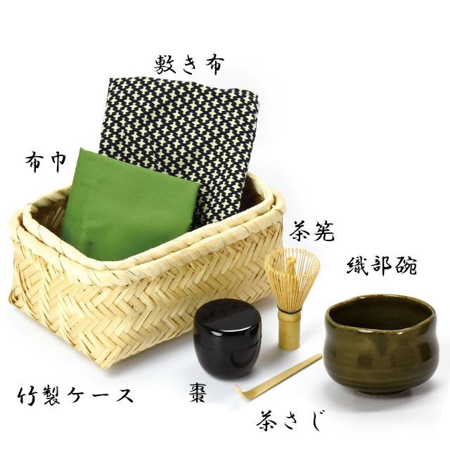 茶碗1/棗(なつめ)1/ケース付茶せん1/茶さじ1/敷き布1/布巾1/竹製ケース1
