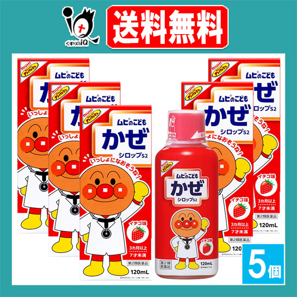 【第2類医薬品】★ムヒのこどもかぜシロップS2 120mL×5個セット【池田模範堂】イチゴ味 鼻みず、のどの痛み、発熱などのかぜの諸症状に お子さま用のかぜ薬 シロップ剤 内服薬 総合かぜ薬 総合感冒薬 風邪 カゼ