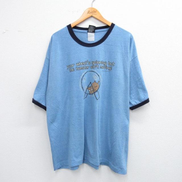 古着 半袖 ビンテージ Tシャツ メンズ 00年代 00s Rainforest Cafe コットン クルーネック 水色 XLサイズ 中古 中古 古着