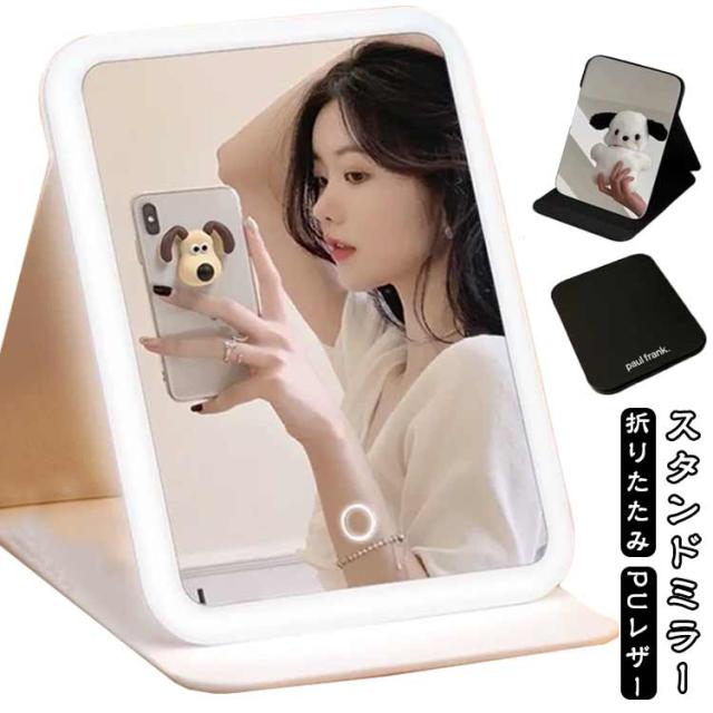スタンドミラー 鏡 卓上ミラー ミラー PUレザー ヘアメイク メイク 巻き髪 折りたたみ 持ち運び ミラー 携帯 テーブルミラー スタンドミラー コンパクト 鏡 トラベル オフィス インテリア フレームレス 旅行