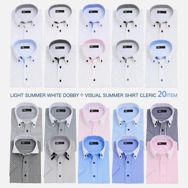 襟元をスマートに見せるボタンダウン、襟・袖裏の生地にこだわった【ホワイトドビー】10種と、いつの時代もオシャレワイシャツの定番【クレリックシャツ】10種の合計20種から自由に選べる5枚セット。