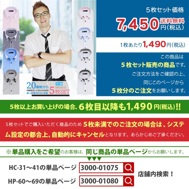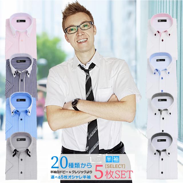 選べる 半袖 5枚セット ワイシャツ メンズ Yシャツ ボタンダウン スリム 送料無料 ホリゾンタル 二重襟 クレリック ホワイトドビー ドゥエ 襟 ステッチ 20種類から選べる