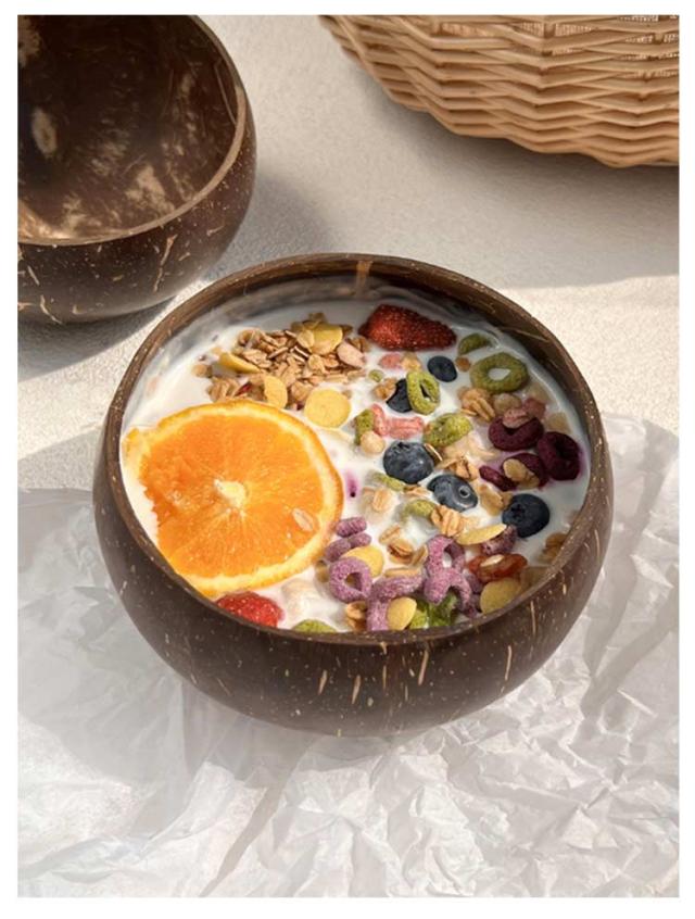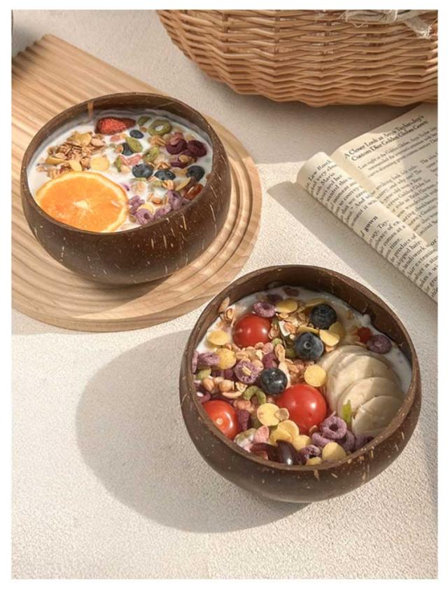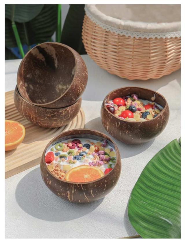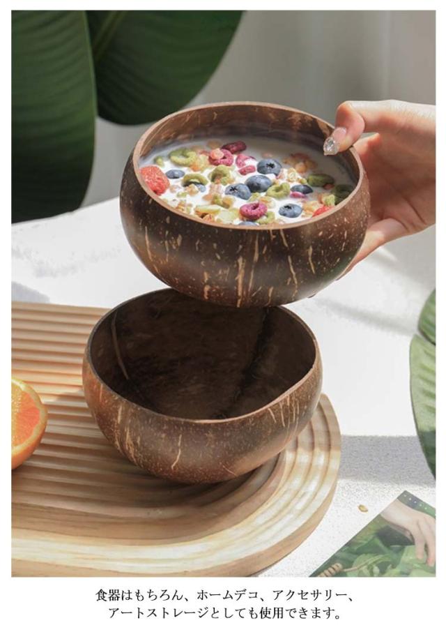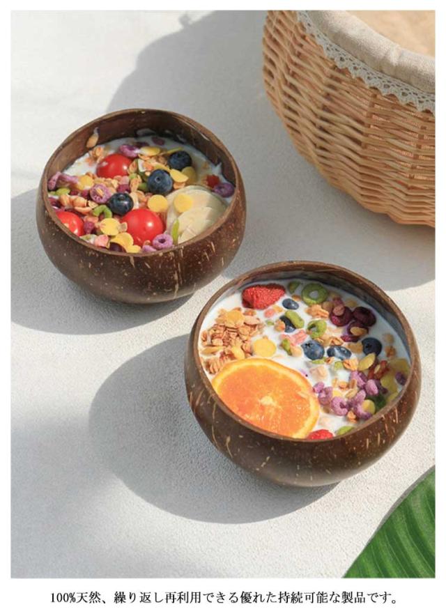 再利用可能なハンドココナッツシェルボウル 北欧 環境に優しい キッチン 4個セット デザート 4個セット 小物入れ ナチュラル スムージーボウル 小物入れ サラダ キッチン ダイニング 装飾用 人気