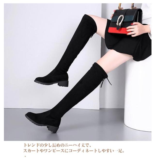 ロングブーツ ニーハイ ニーハイブーツ 5cmヒール ロングブーツ レディース ストレッチ きれいめ おしゃれ ぺたんこ ローヒール 秋
