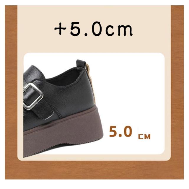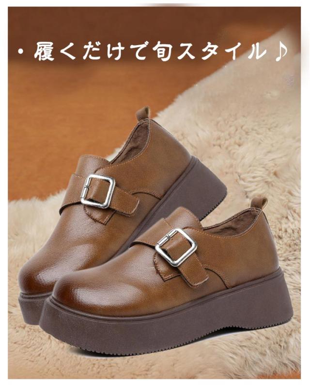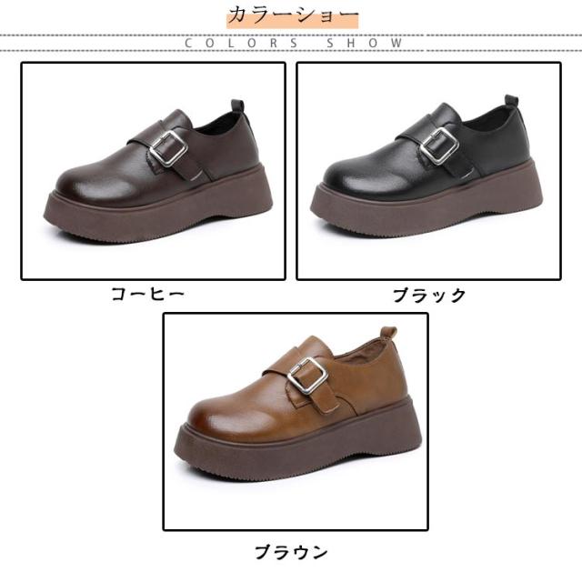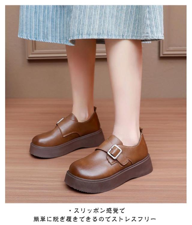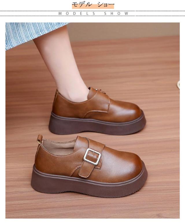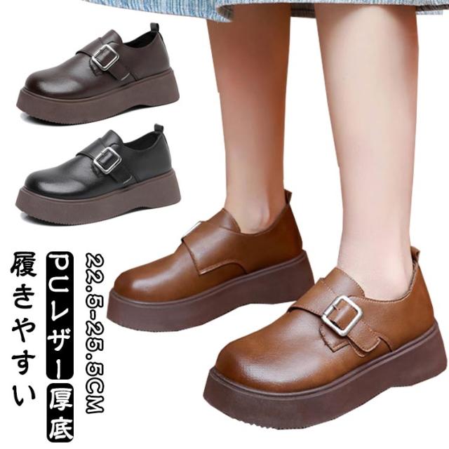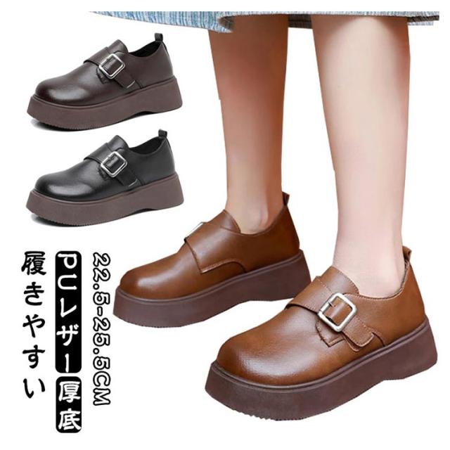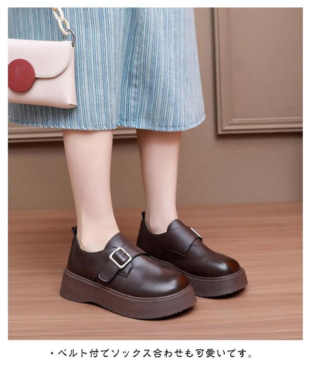 ローファー ラウンドトゥ バックル 5cmヒール ベルト 可愛い 履きやすい レディース 厚底 合成皮革 PUレザー 春