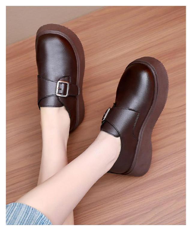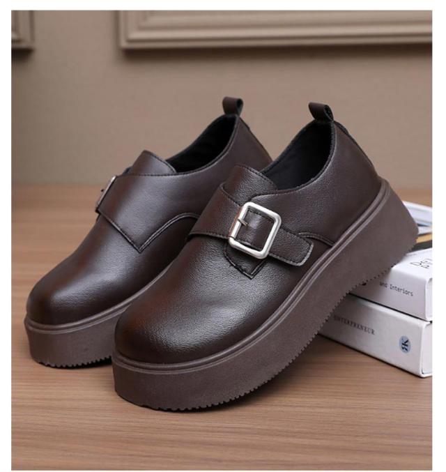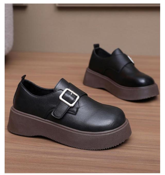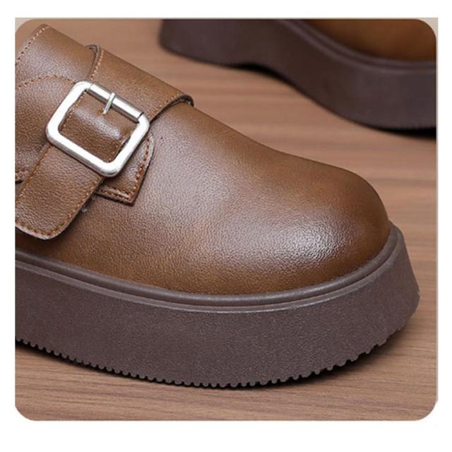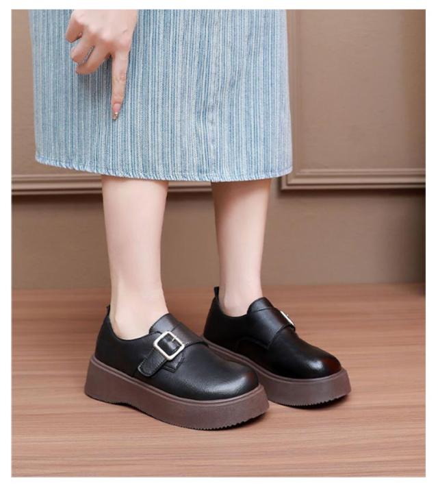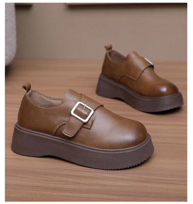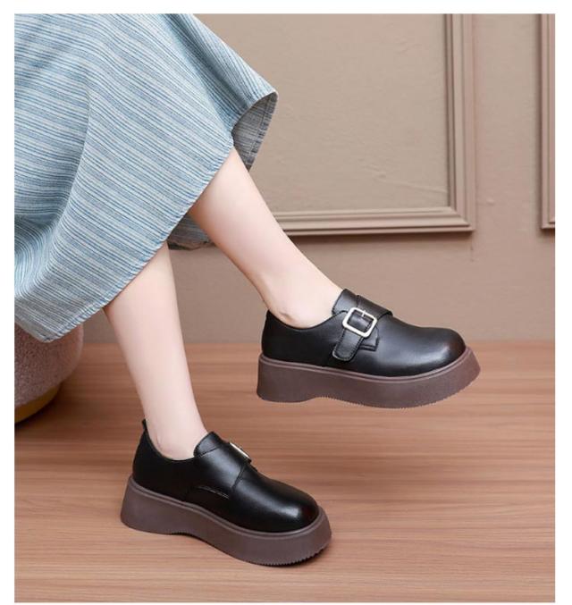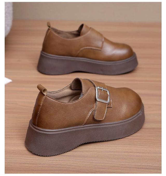 ローファー ラウンドトゥ バックル 5cmヒール ベルト 可愛い 履きやすい レディース 厚底 合成皮革 PUレザー 春