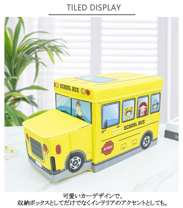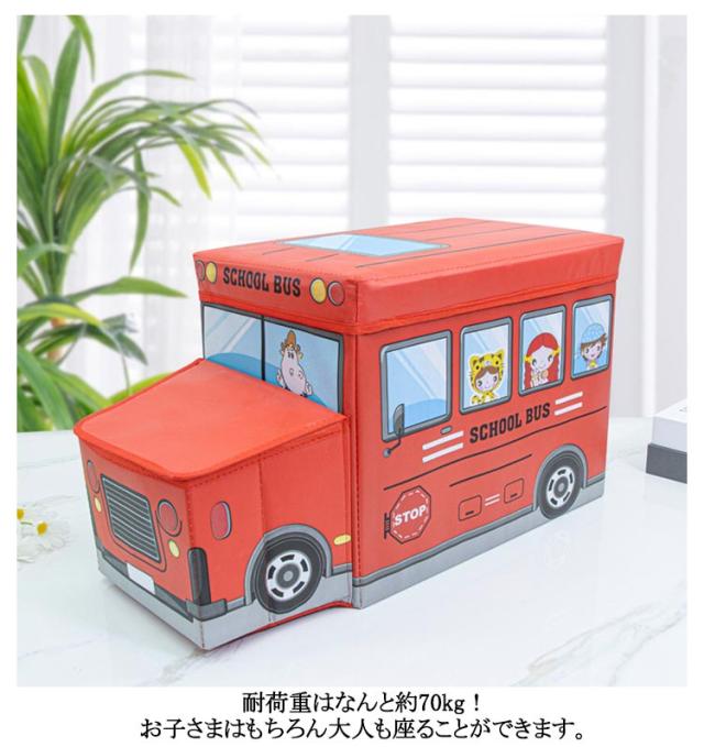 座れる 収納ボックス キャラクター おもちゃ箱 子供 ふた付き ボックス 蓋付き 玩具 かわいい収納 収納スツール 車 バス 乗り物 おもちゃ お片付け おかたづけ 箱 座れる フタ付き 折りたたみ 座れる収納
