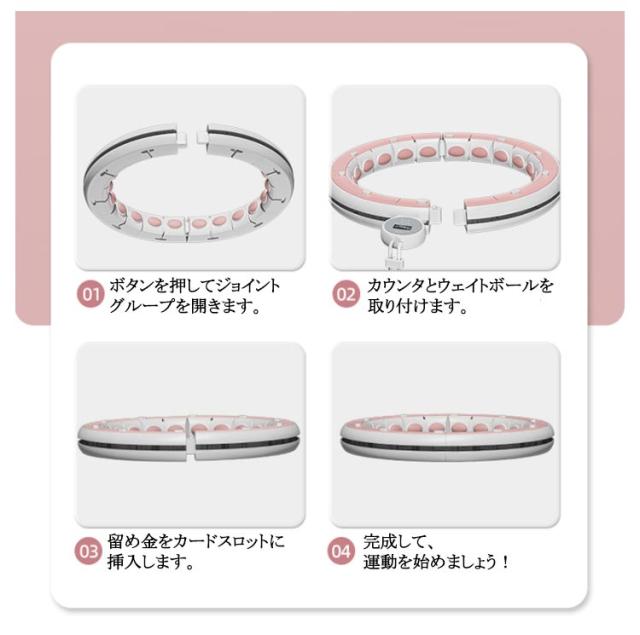 | 45-100kg以内!組み立て式スマートフラフープ。3Dシリカゲルマグネット マッサージフラフープ。 360°環腰マッサージ腰を振り、腰腹脂肪を均一にマッサージする毎日30分で、セクシーな腰を持つことができます。 長時間ぐるぐる回っても腰を痛めない親指のような押しマッサージ。 金属留め具は、 激しい運動をしても破断しない。 腰と腹の脂肪を均一にマッサージし、 簡単に脂肪を振って痩せる。 回転数の運動データをリアルタイムで記録し、運動量を科学的に制御する。 密封式静音軸受は、使用時の滑りがスムーズで、騒音が80%低減されている。ボディスライドレール×精鋼ボールベアリングは、 円と弧の高さが一致している。 01.ボタンを押してジョイント グループを開きます。 02.カウンタとウェイトボール を取り付けます。 03.留め金をカードスロットに挿入します。 04.完成して、運動を始めましょう! | |