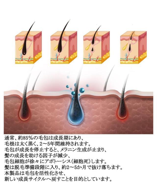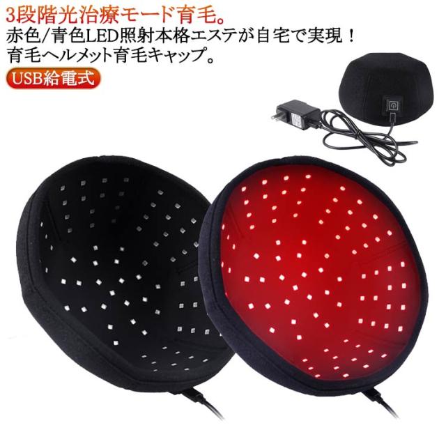 | 3段階光治療モード育毛。赤色/青色LED照射 本格エステが自宅で実現! 育毛ヘルメット 育毛キャップ。 ヘアグロースキャップの側面ボタンを2秒長押しで電源オン。 モード1:ボタンが赤色に点灯(常灯)、3段階調整/2種類のパルス形式。 モード2:長押しで緑色に点灯、作動停止。 通電していない状態:白色表示。 通常、約85%の毛包は成長期にあり、毛根は太く黒く、2〜5年間維持されます。 毛包が成長を停止すると、メラニン生成が止まり、髪の成長を助ける因子が減少、毛包細胞が徐々にアポトーシス(細胞死)します。 髪は脱毛準備段階に入り、約2〜5か月で抜け落ちます。 本製品は毛包を活性化させ、新しい成長サイクルへ戻すことを目的としています。 使用上の注意事項: 1.使用しない時は必ず電源スイッチをオフにしてください。 2.使用前に、医師に本製品の使用が適しているか確認してください。 3.髪の毛の毛包が完全に壊死している場合、本製品の使用は効果がありません。 4.過度の曲げや折りを禁止します。機能破損の原因となります。 5.本製品は電子機器のため、製品全体を水に浸すことはできません。清掃する場合は、取扱説明書に従ってください。 6.電源部に水が入った場合は、直ちに使用を中止し、乾燥後に再使用してください。 7.その他の異常が発生した場合は、直ちに使用を中止してください。 | |