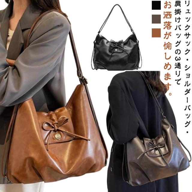 大容量 レディース ショルダーバッグ トートバッグ 2way 3way バッグ リュック フェイクレザー 肩掛けバッグ カバン トートバッグ リボン おしゃれ 通勤 ビジネス