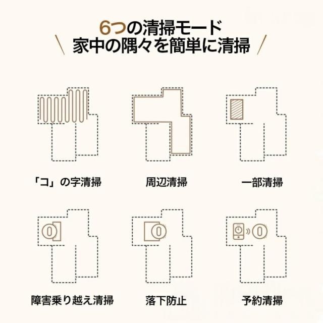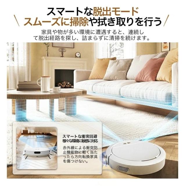 掃除ロボットは、静音モード、衝突防止・落下防止センサー、自動充電、タイマー機能、障害物乗り越え機能など、さまざまな便利な機能を搭載しています。これらの機能により、掃除をさらに便利かつ効率的に実行することができます。