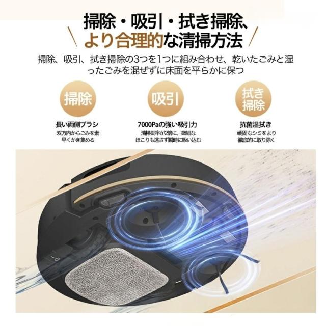 ロボット掃除機 水拭き両用 8500Pa 強力吸引 超薄型 自動ゴミ収集 収納 シンプル操作 拭き掃除 自動充電 衝突防止 Wifi遠隔操作 自動掃除機 床拭きロボット 静音