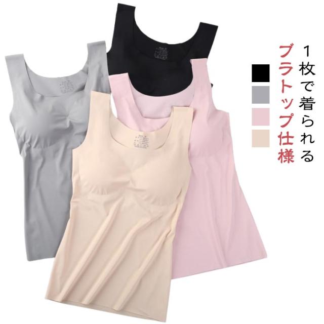 2枚セット ブラタンクトップ カップ付きタンクトップ インナー ズレない ブラトップ 締め付けない パット付 タンクトップ ラウンドネック 肌着