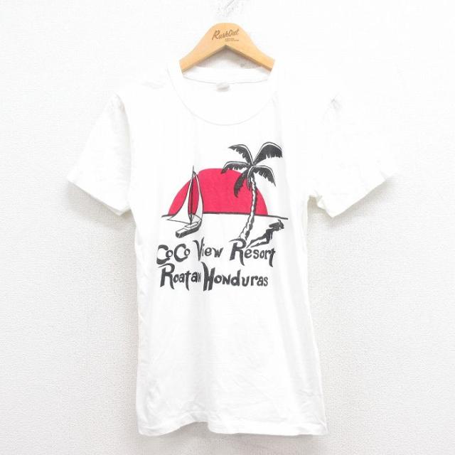 古着 半袖 ビンテージ Tシャツ メンズ 80年代 80s ロードレース クルーネック 白 ホワイト Sサイズ 中古 中古 古着