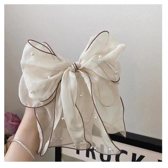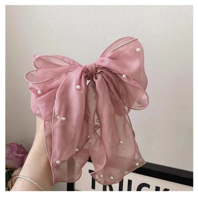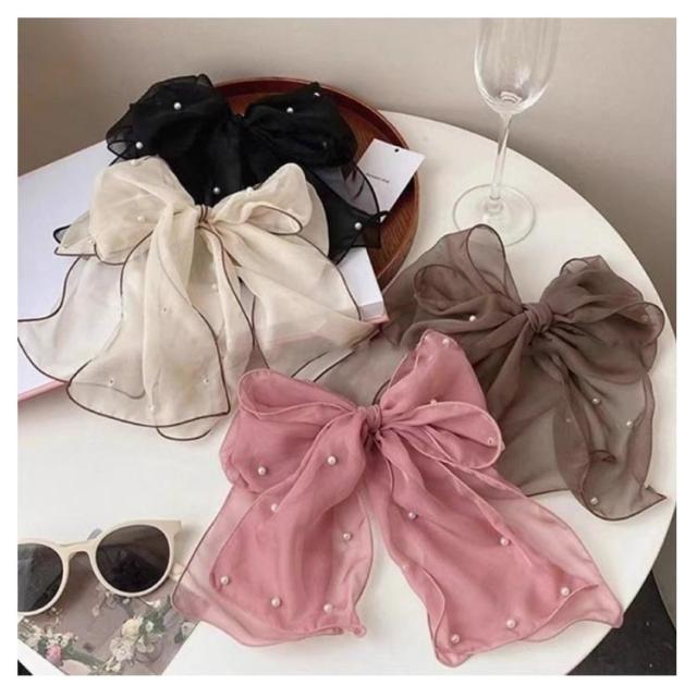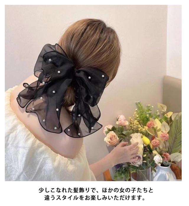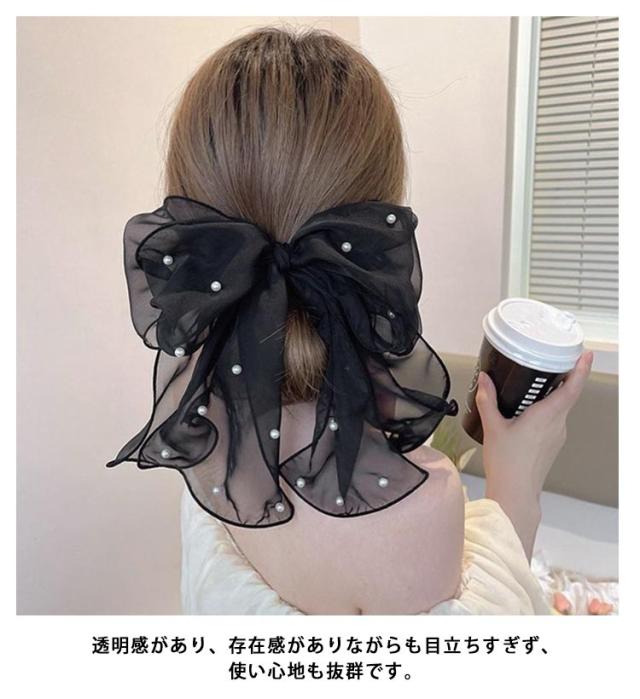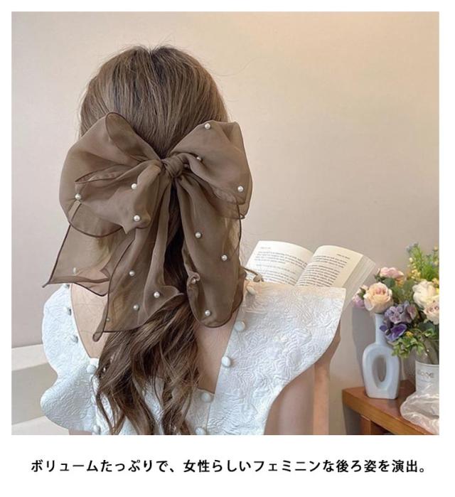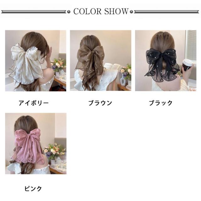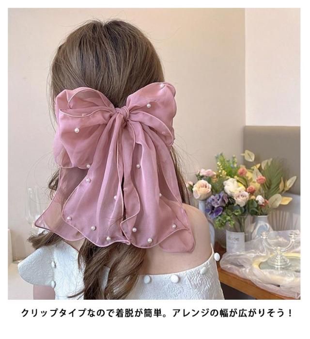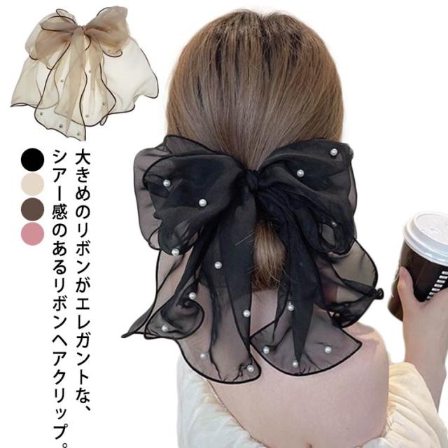 バレッタ ヘアバレッタ リボン ヘアアクセサリー ヘアクリップ BIG オーガンジー ビッグリボン リボン 簡単装着 ビッグリボン ヘアクリップ 髪留め レディース 女性 ヘアアクセサリー 大きめ 大きめ スカーフ風 ピンク アイボリー ブラック