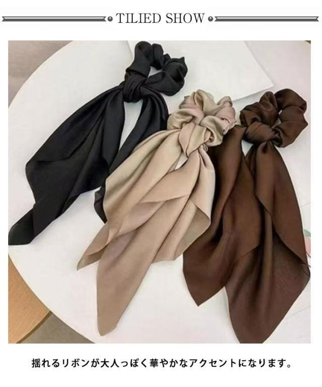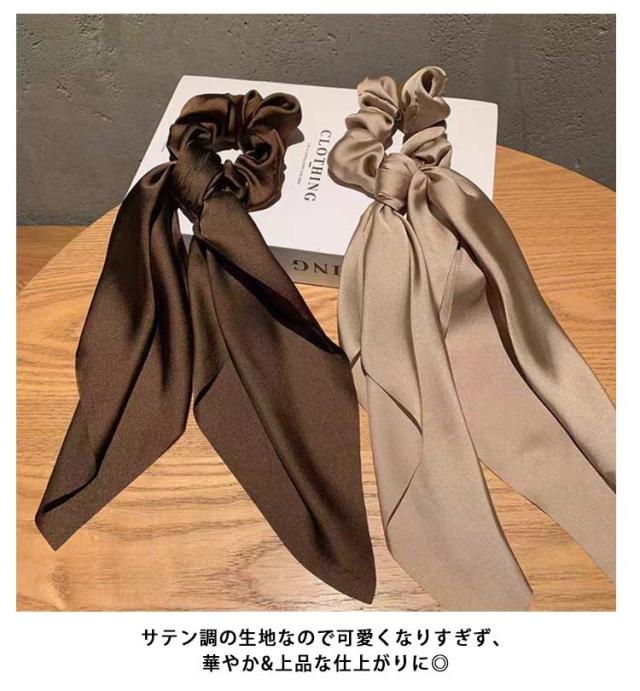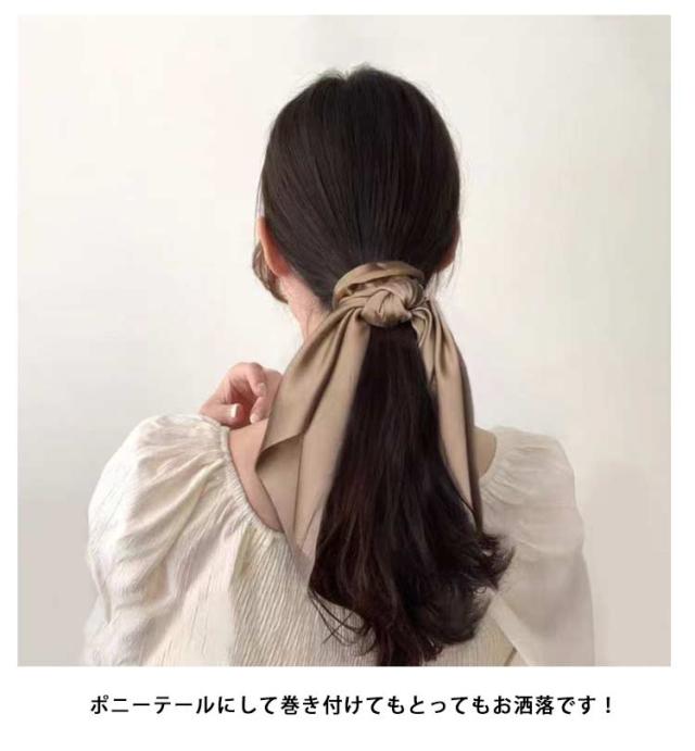 | ヘアスタイルを大人可愛く魅せるボリュームたっぷりのサテン調シュシュ。 揺れるリボンが大人っぽく華やかなアクセントになります。 サテン調の生地なので可愛くなりすぎず、華やか&上品な仕上がりに◎ ポニーテールにして巻き付けてもとってもお洒落です! 普段使いからオフィス、結婚式などのイベント時と幅広いシーンでお使いいただけます。 忙しい朝にもサッと着けることができ、ふわふわとなびく女性らしさを引き立たせてくれます。 | |
