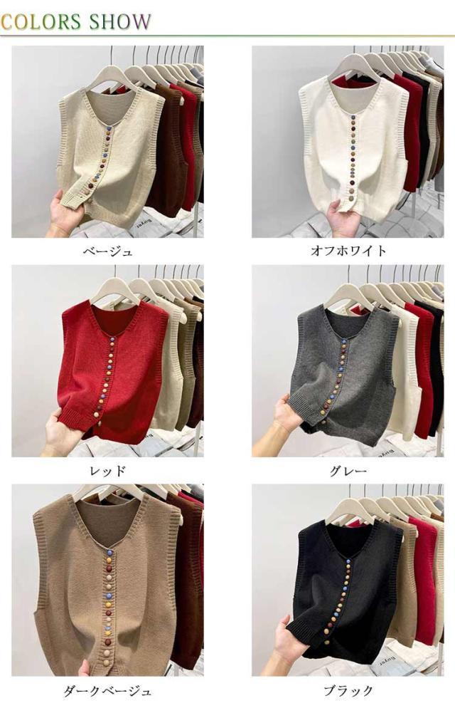 ニットベスト ノースリーブ カラフルボタン クルーネック レイヤード 春 ニット 冬 ベスト トップス 秋 セーター カラフルボタン 重ね着 大きいサイズ ゆったり カジュアル 大人可愛い