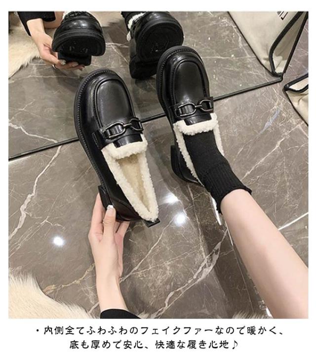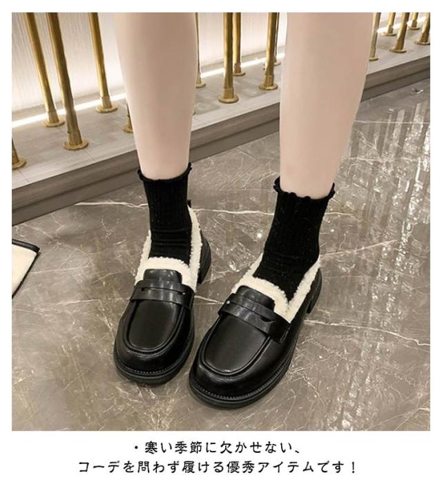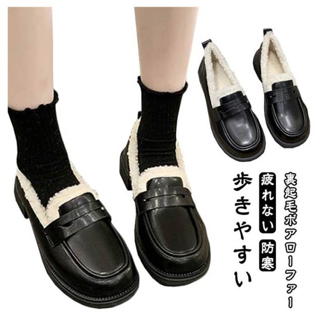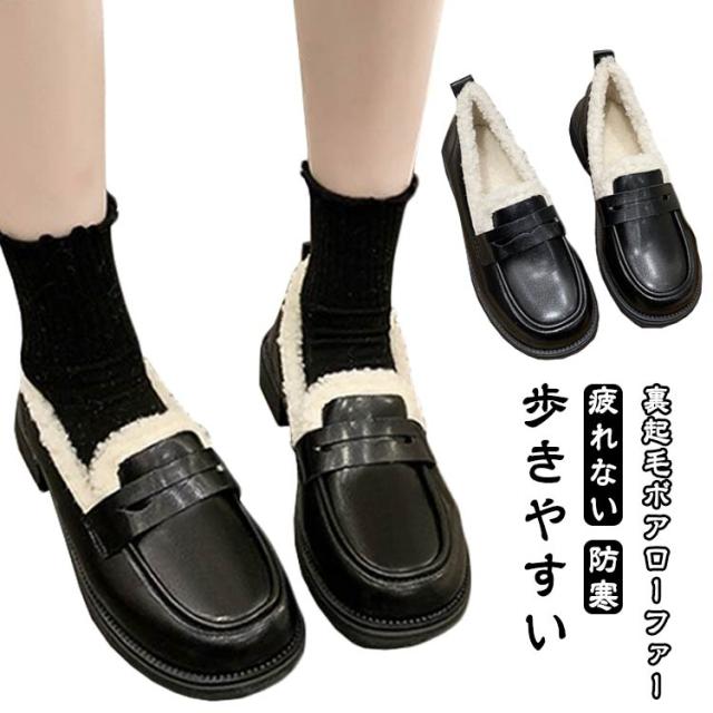 ローファー 柔らかい 歩きやすい 裏起毛 レディース 秋 通勤 ボア 高級感 疲れない 入園式 入学式 暖かい ブラック ローファー シンプル 黒 安定感 履きやすい 防寒 温活