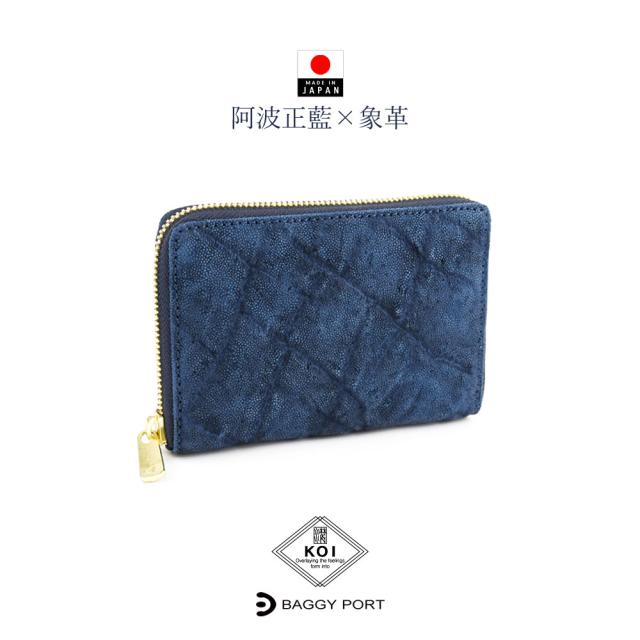 二つ折り財布 ラウンドファスナー メンズ バギーポート コーアイ 大容量 阿波正藍染め 藍染レザー 象革 エキゾチックレザー 本革 YKK エクセラファスナー 札仕分け 使いやすい 大人の逸品 本物志向 ラウンド型 エレファントレザー BAGGY PORT KOI ギフト HRD1001