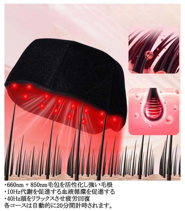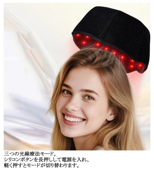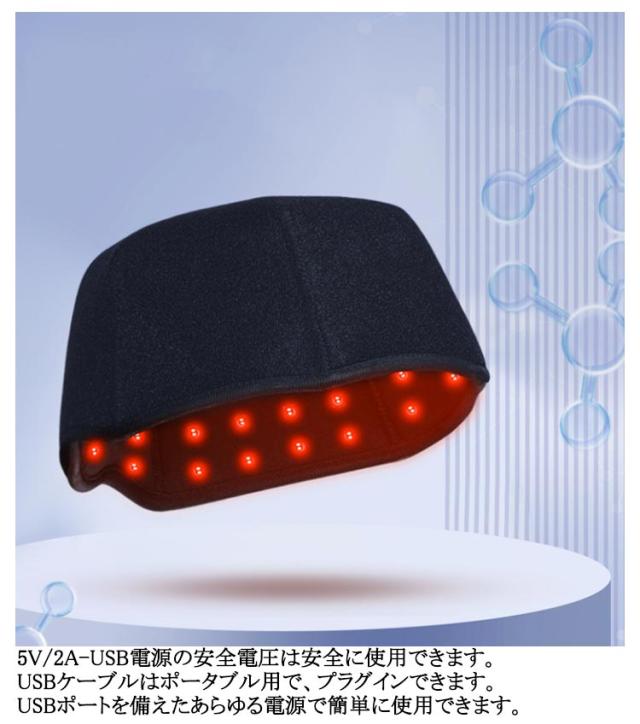 | 赤外線光線療法キャップ。育毛/抜け毛防止/頭皮ケア/疲労回復! 300個のLEDビームが頭部をフルカバーエネルギーを集中し、頭部を均一にカバーする 有効波長660nm+850nm 三つの光線療法モード。シリコンボタンを長押しして電源を入れ、軽く押すとモードが切り替わります。 ・660nm + 850nm毛包を活性化し強い毛根 ・10Hz代謝を促進する血液循環を促進する ・40Hz頭をリラックスさせ疲労回復 各コースは自動的に20分間計時されます。 5V/2A-USB電源の安全電圧は安全に使用できます。 USBケーブルはポータブル用で、プラグインできます。USBポートを備えたあらゆる電源で簡単に使用できます。 【本格的な頭皮ケア】エステのような効果を自宅で実現します。続けやすい使い勝手が魅力です。 【副作用の心配なし】健康な方でも安心して使用できます。副作用の心配が不要です。 【赤色LED効果】赤色LEDの光が皮膚から浸透し、毛包を活性化。髪の豊かさと強さを回復します。 【超軽量】長時間の使用でも首への負担を最小限に抑えます。 【簡単操作と安全装置】USB給電式で、変圧器不要。どこでも使用できます 【男女兼用】男女共用で、家庭用育毛器として家族全員で使用可能。 【育毛キャップ】育毛、発毛促進、抜け毛防止、頭皮ケア、髪の再生など多彩な目的に対応。 | |