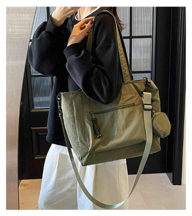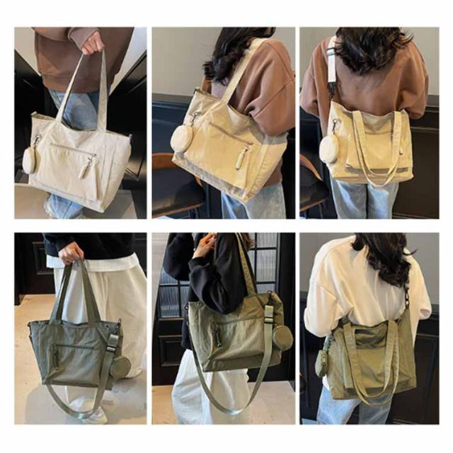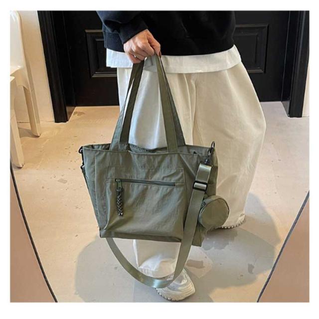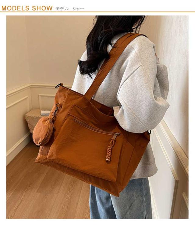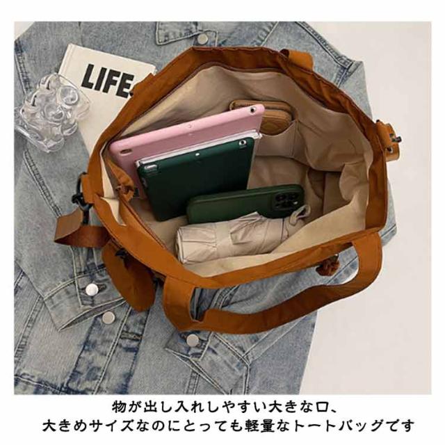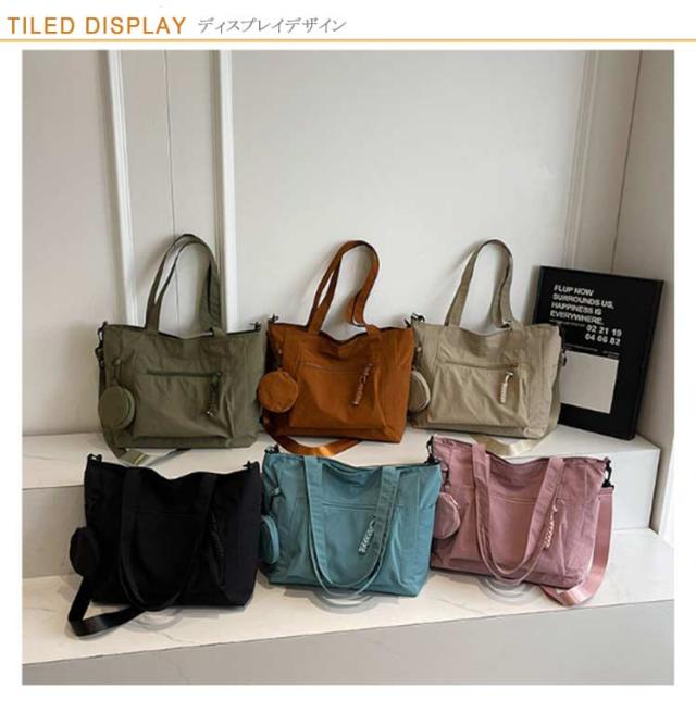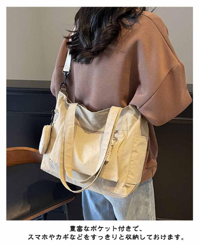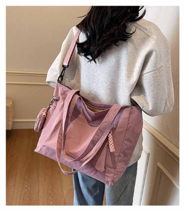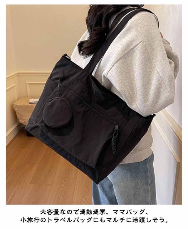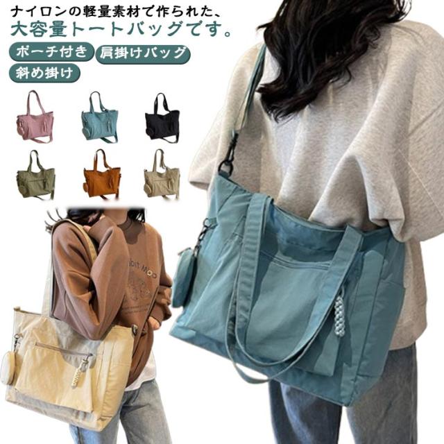 軽量 トートバッグ 大容量 無地 ショルダーバッグ トート ポーチ付き 鞄 ファスナー レディース 斜め掛け トートバッグ A4 ナイロン かばん 丈夫 軽い 通勤 通学 シンプル バッグ 大人 可愛い 学生 女子 女性 誕生日 プレゼント ギフト 韓国風 カジュアル