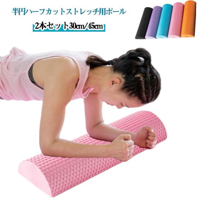 30cm 2本セット ヨガポール ハーフカット 2本セット ストレッチポール ピラティス エクササイズポール ハーフローラー フォーム 45cm 筋肉ほぐし 肩甲骨 ローラー 背中のストレッチ ヨガ ローラー フィットネス器具 滑り止め マッサージ 運動後のケア 筋膜リリース