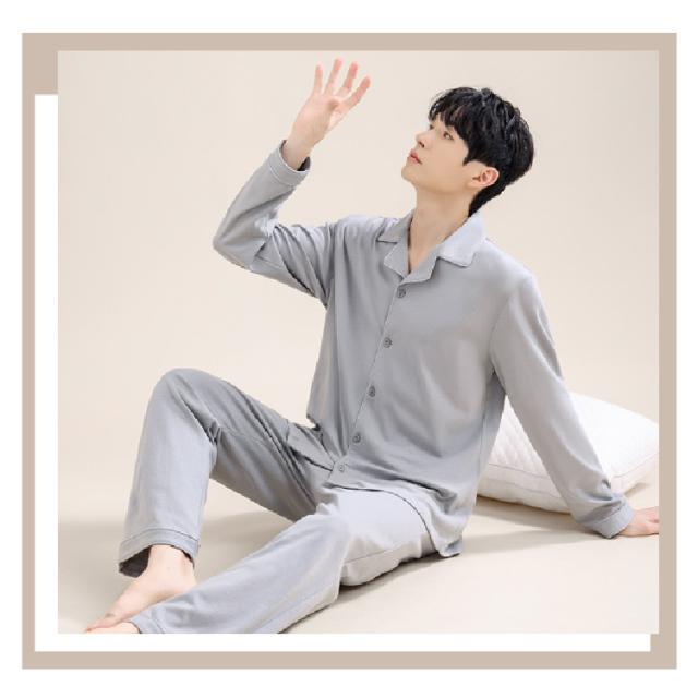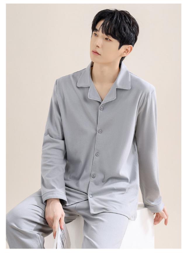 メンズ 長袖パジャマ 襟付き 長袖パジャマ 100%綿 上下セット セットアップ パジャマ 秋 長袖 冬 前開き 男性 学生 男子 前開きパジャマ ナイトウェア 寝間着 部屋着 無地 パイピング シンプル 襟付きパジャマ 上下 2点セット メンズファッション 秋物 秋服