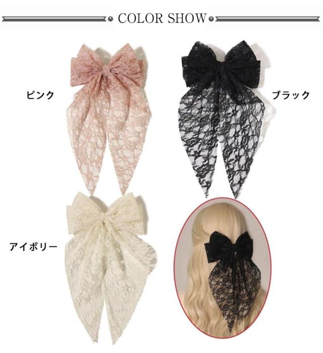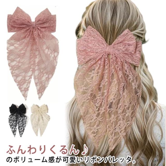 花柄 レースリボン リボン ヘアクリップ ヘアクリップ バレッタ ヘアアクセサリー 髪飾り クリップ 浴衣 スカーフ アップスタイル 着物 ヘアアレンジ しっかり 大人 上品 エレガント 大きめ ヘアクリップ 結婚式 お呼ばれ ブラック ピンク