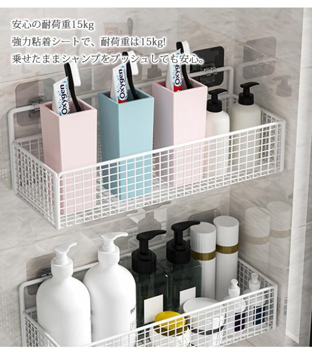 お風呂収納 浴室収納 浴室ラック お風呂バスケット 壁面収納 バスルームラック 強力粘着 穴開け不要 おもちゃバスケット キッチン 収納ラック シャンプーボトル おしゃれ 白 黒