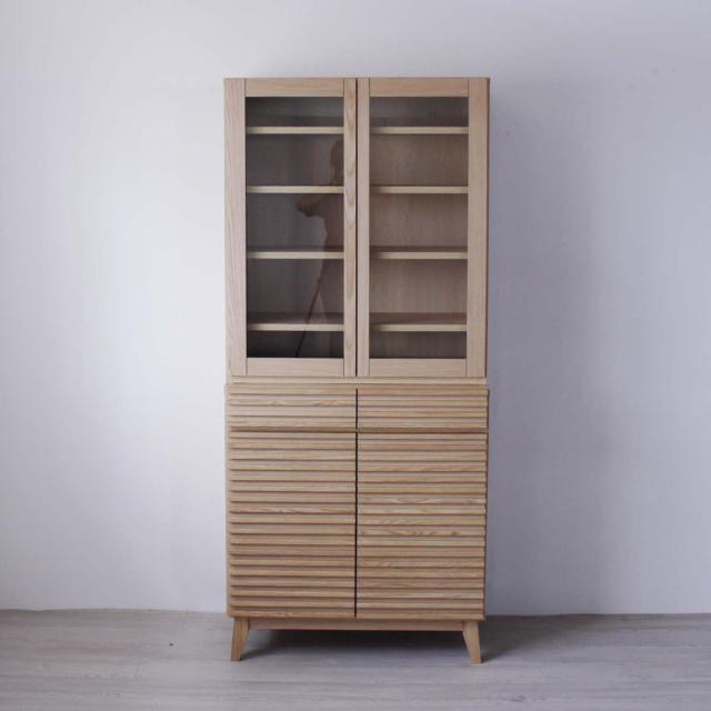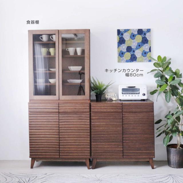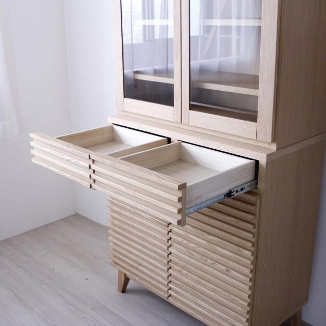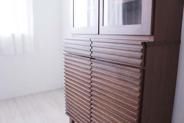 天然木無垢のルーバーで生活感を隠して収納 食器棚 幅80cm