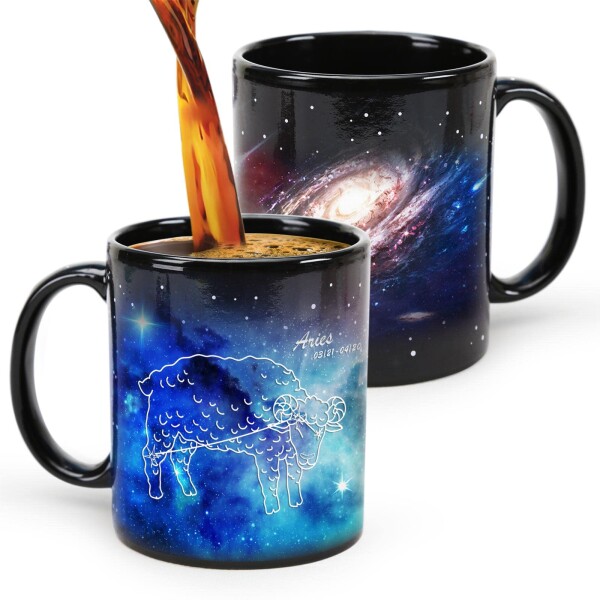 MUGKISS牡羊座熱交換星座カップ11オンス、星座牡羊座コーヒーカップ、Starry陶磁器変色カップ、3-4月マジックギフト
