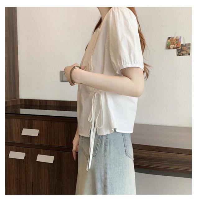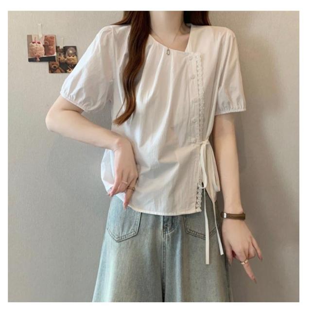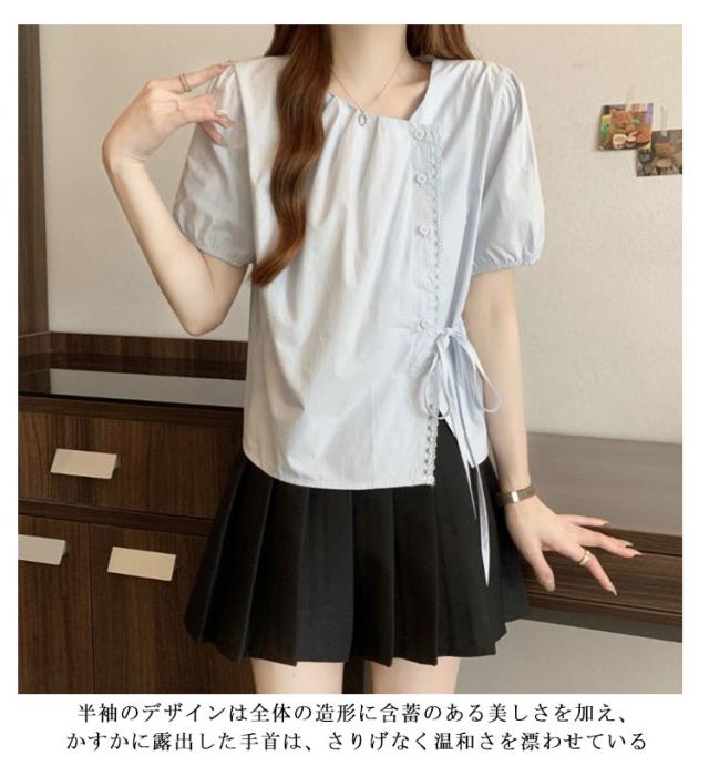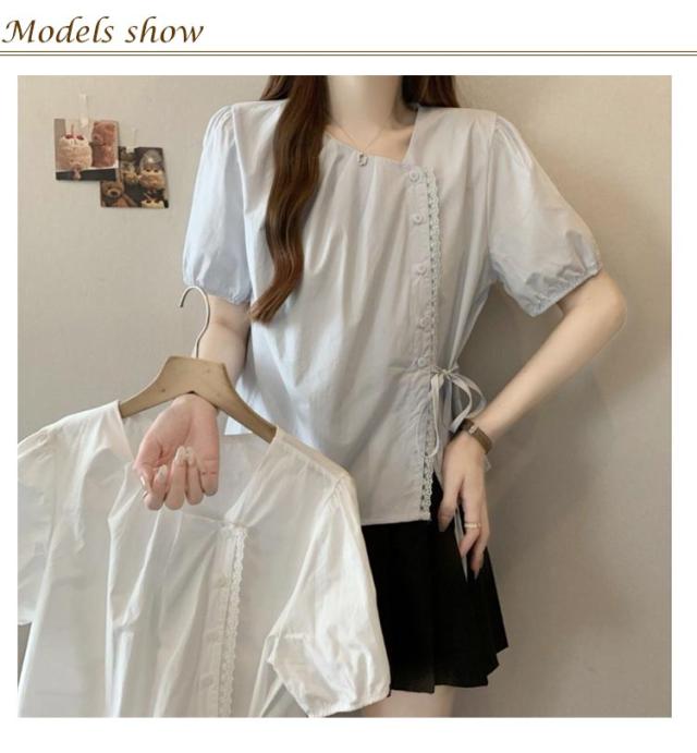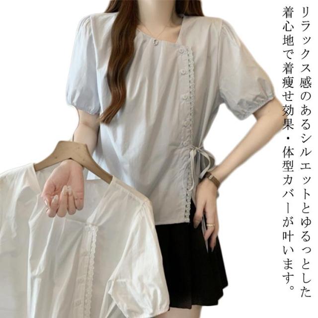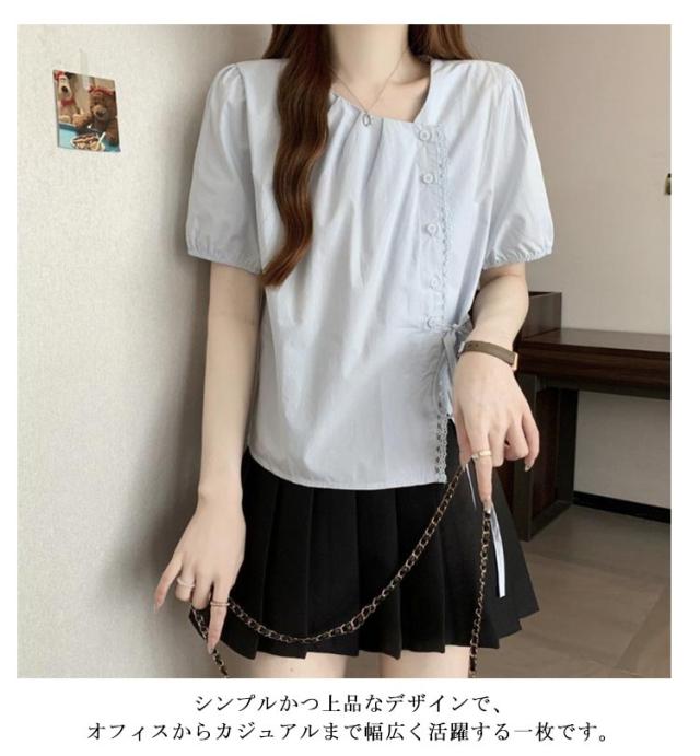 ブラウス レディース 春 夏 半袖 Vネック チャイナ風 無地 エレガント かわいい 半袖ブラウス トップス シャツ 中華 中国風 Tシャツ 薄手 ゆったり 無地 シンプル 大きいサイズ カジュアル 旅行 サマーウエア ルームウエア