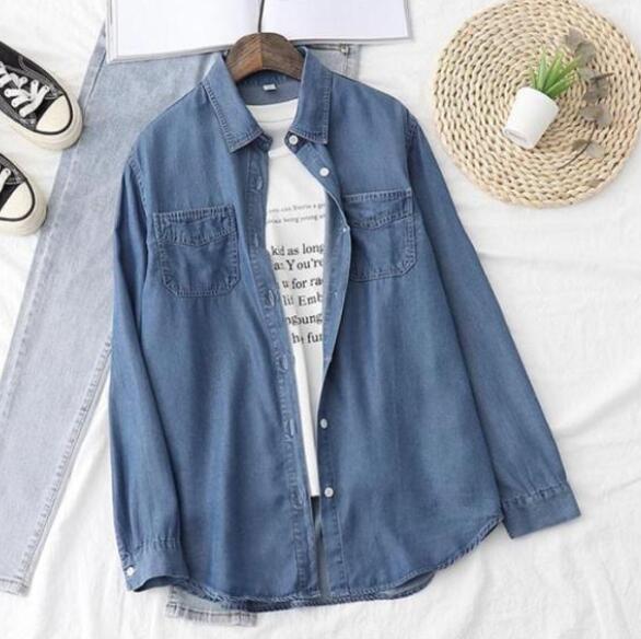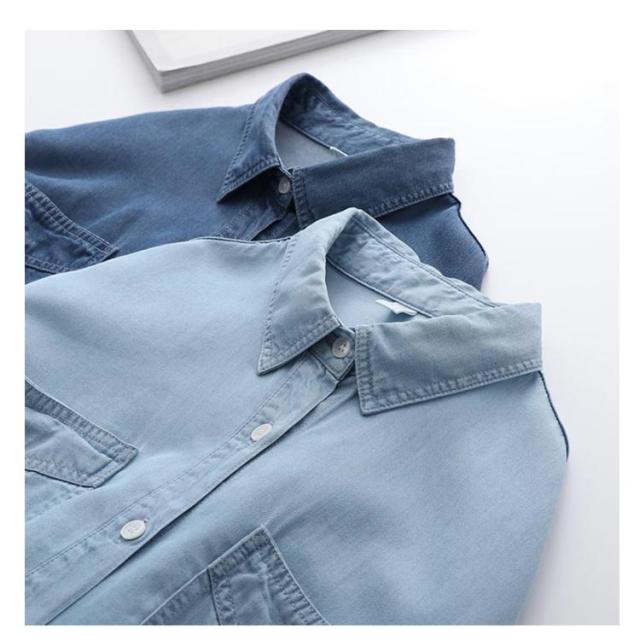 デニムシャツ レディース 長袖 デニム シャツ ダンガリーシャツ 羽織り トップス ジャケット ライトオンスデニム ブラウス 薄手 ダンガリー ウォッシュ加工 おしゃれ かっこいい 韓国 襟付き ボタンシャツ 送料無料