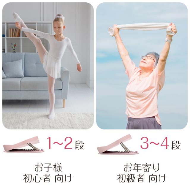 9段階の角度調整で、自分の体の硬さやレベルに合わせてベストなストレッチができるので、