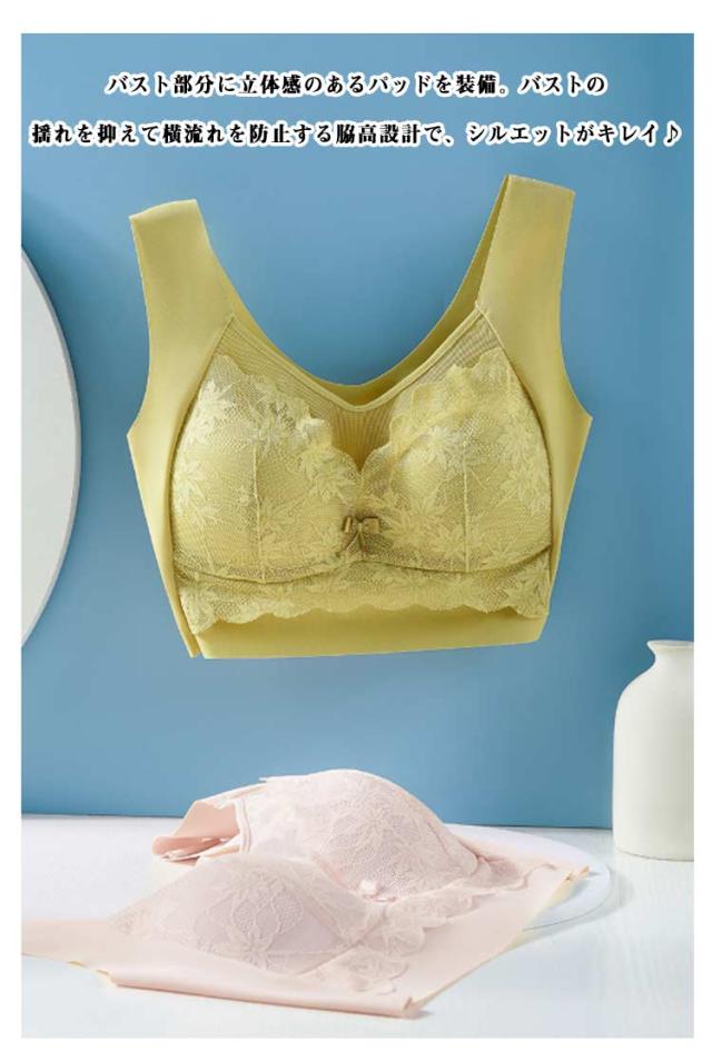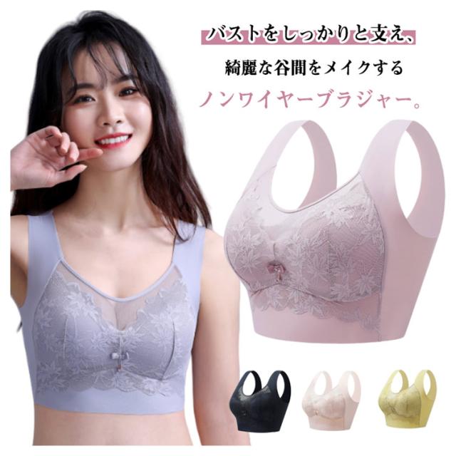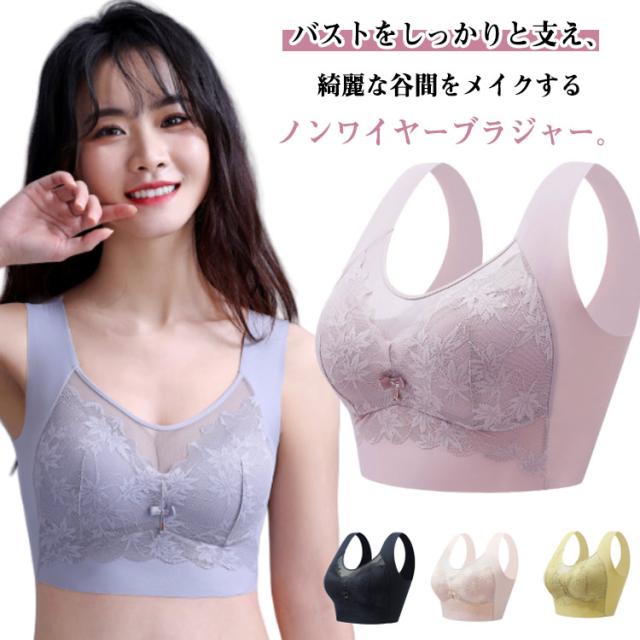 送料無料 ブラジャー ノンワイヤーブラ ホックなし インナー ブラ フルカップブラジャー インナー 下着 幅広肩紐 ストレス軽減 脇高 寄せ上げ 垂れ防止 横流れ予防 セクシー かわいい レース花柄 育乳