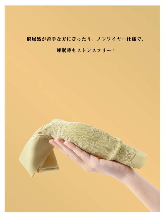 | バストを心地よくホールド◎おしゃれなナイトブラが新登場。 頭からすっぽり被るだけでOK。ホックが肌に当たるなどの不快感もゼロ◎ やや薄手のカップで、ボリュームが出すぎないのも嬉しいポイント。 ショルダーストラップが幅広で肩に食い込まず肩こり対策にも◎ バストの揺れを抑えて横流れを防止する脇高設計。U字のバックラインで後ろ姿も美しく♪ 背中や脇からはみだしがちなお肉をしっかりとカバーし、洋服を着たときのシルエットをすっきりスリムにしてくれます。 カップ部分のレースや小花柄が上品な印象を演出。色違いで揃えたくなるカラーバリエーション♪ | |